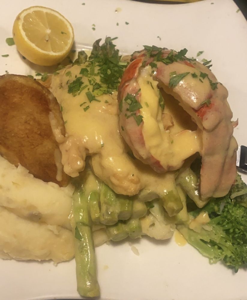 The menu boasts tantalizing appetizers like Shrimp Tempura with sweet truffle chili sauce and English Pea Soup enriched with poached shrimp. For mains, consider the Crunchy Chicken Sandwich or the signature Chicken Lobster Oscar—a sumptuous treat over linguine. The salads, including a refreshing Kale Salad, perfectly complement the rich flavors of the entrees.